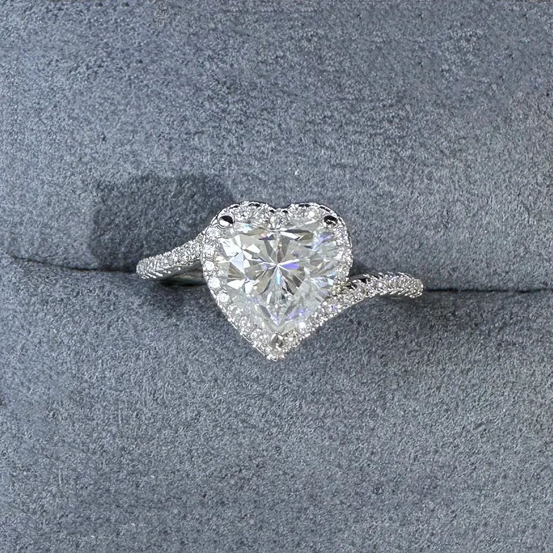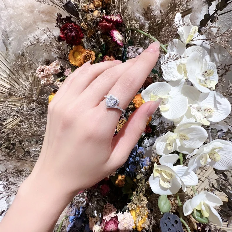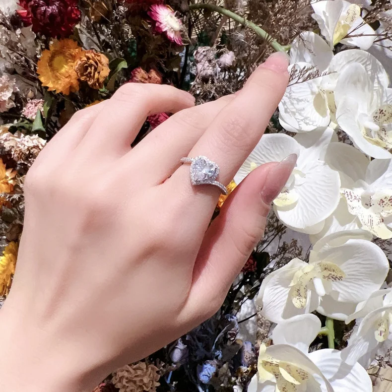 1.2 Carat 7mm Heart-Shaped Zircon S925 Sterling Silver Wedding Ring Fine Jewelry