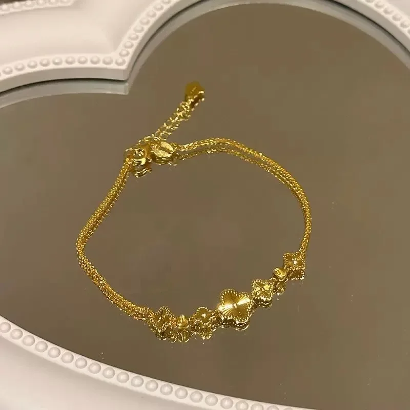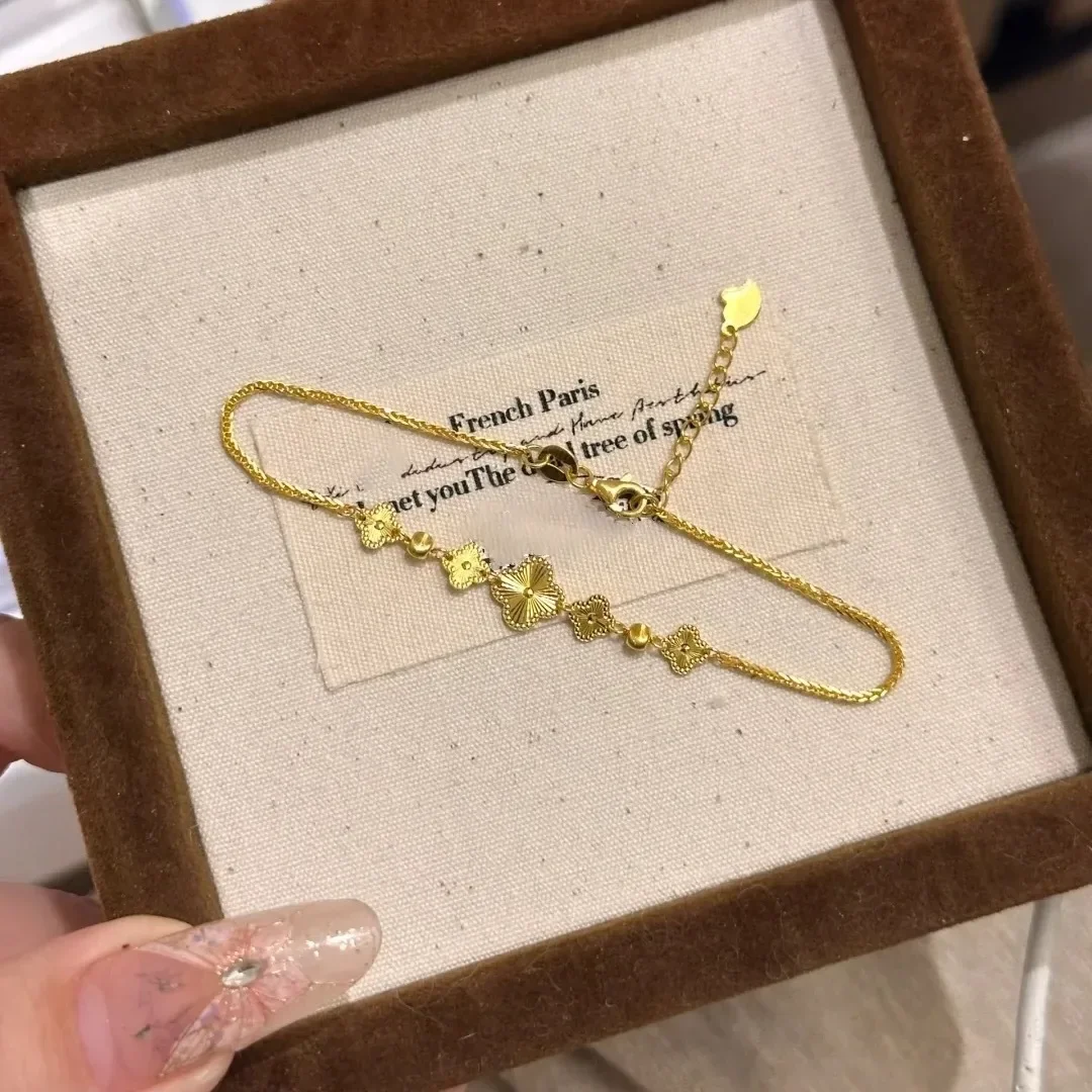 Laser Five-leaf Clover Bracelet Niche Design Sweet Light Luxury Fashionable Exquisite Bracelet Versatile and High-end Jewelry